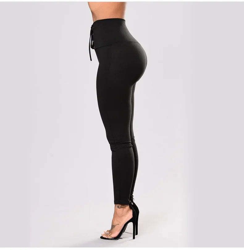 Estas mallas negras con detalle tipo corset en la cintura son pura actitud. El diseño ajustado realza tus curvas, mientras el cordón entrecruzado al frente añade un toque atrevido y seductor. Una prenda que mezcla estilo, poder y sensualidad en una sola mirada. Perfectas para elevar cualquier conjunto con una vibra provocadora y segura.